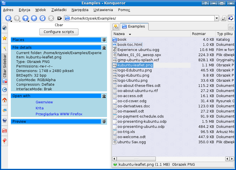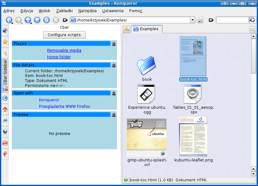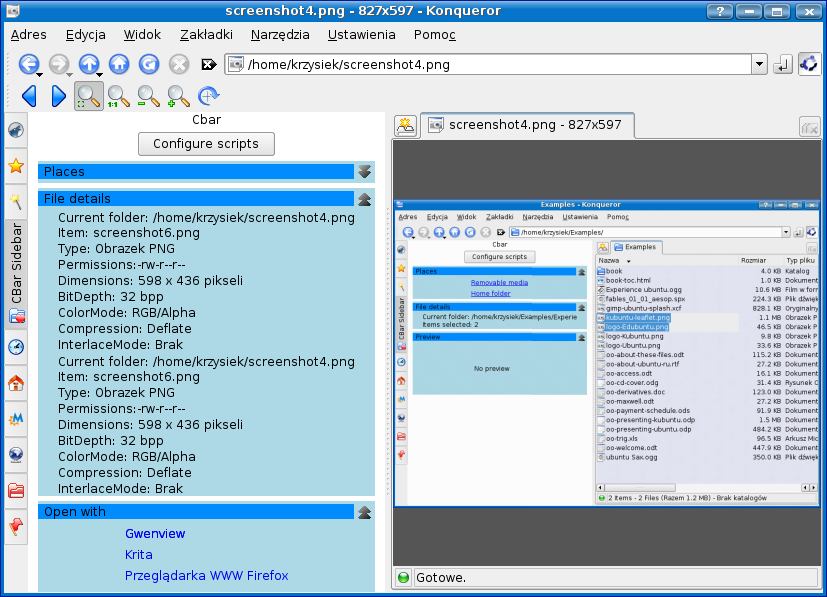 Cbar - scriptable context sidebar for KDE